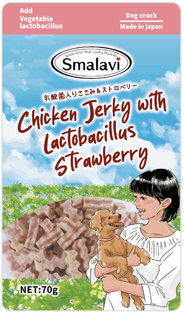原料小麥粉、雞柳、甘油、糖漿、加工澱粉、丙二醇、牛油、乳酸鈉、紫薯、酵母抽提物、發酵乳、乳清蛋白、草莓醬、酵母、雞抽提物、pH調節劑、L-谷氨酰胺鈉 、著色劑(二氧化鈦)、草莓香精、抗氧化劑(迷迭香提取物、提取維生素E)
