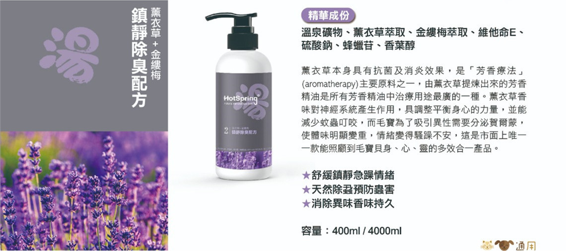 載入中...請稍候...HotSpring湯寵物溫泉 薰衣草舒緩情緒配方 寵物沖涼液 400ml